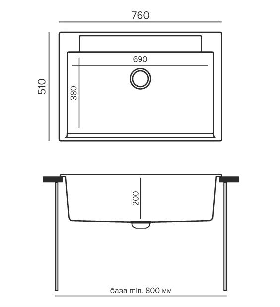 —Мойка прямоугольная ARGO-760 (№316 Космос) арт. 854734 Polygran